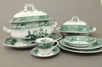 in green Camilla pattern. Consisting of a twelve place setting, including soup tureens and ashette. -