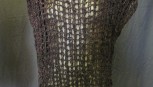 together with a brown wool check jacket with dyed sheepskin collar, a leather knitted brown tunic (with two large holes to back) and a separate cream sheepskin collar (4) -