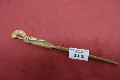 Lot #312 - Early brass bird decorated letter opener with horn inlay