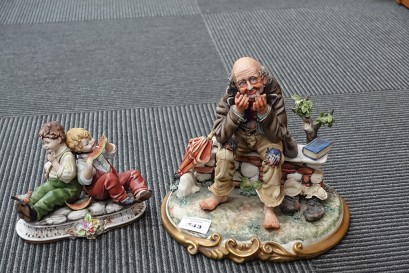 height 15 cm and Italian signed ceramic figure of a seated vagrant, height 24 cm