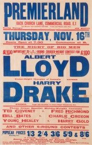 “Premierland, Thursday, Nov.16th.The Night of Big Men, Albert Lloyd, Cruiser-Weight Champion of Australia, versus Harry Drake, Windsor - Fought Jack Bloomfield for Cruiser-Weight Championship Belt”, window mounted, framed & glazed, overall 67x99cm. -