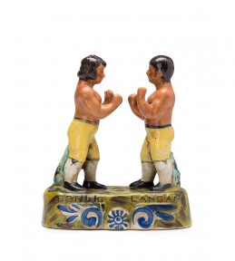 Lot Description:SPRING v LANGAN, reproduction Staffordshire figurine of this famous bare-knuckle fight in 1824