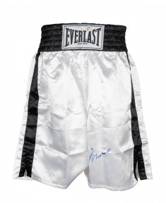 Lot #33 - MUHAMMAD ALI, signature on pair of ‘Everlast’ boxing shorts with black band & trim