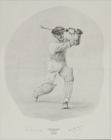 Lot Description:DON BRADMAN: Print “Cricketing Heroes - Sir Don Bradman” by Jack Russell