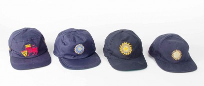 noted baseball-style caps (3) with one signed by Devang Gandhi, and another with unidentified signature; plus Mumbai Cricket Association cap. G/VG condition. (4 items) -