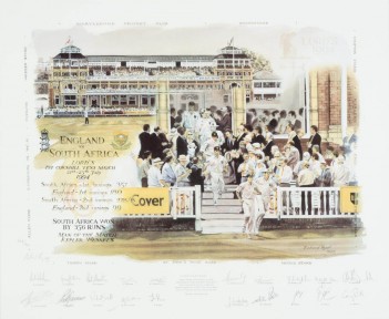 Lot Description:CRICKET PRINTS: “Sir Don Bradman” by Alan Fearnley