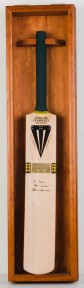 with brass plaque affixed noting his World Record 11,174 Test runs. In attractive display case, overall 25x96cm. -