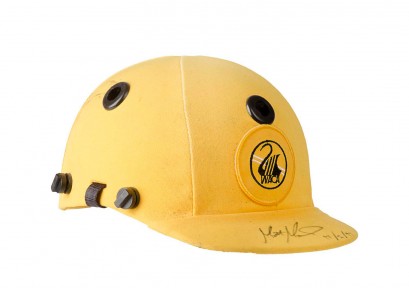 yellow, with “WACA” badge on front, signed on brim by Matt Mason, no protective grill. Good match-used condition. -
