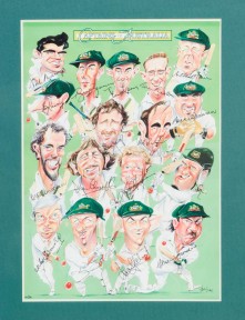Lot #299 - “CAPTAINS OF AUSTRALIA” print by Harv, with 16 signatures of Australian Captains