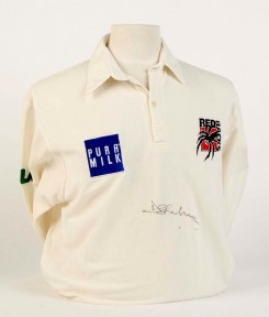 noted his Victorian jumper; Redbacks shirt (signed); Redbacks training shirt; Rajasthan Royals shirt, pants (2) & shorts; Australian beach cricket shirt, boardshorts & visor (signed); Australian soccer shirt presented to him with “BOOF” on back; personal football jumper from Pultney Football Club. -