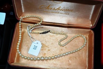 102 pearls in total, on a sterling silver marcasite set clasp. 45cm long -