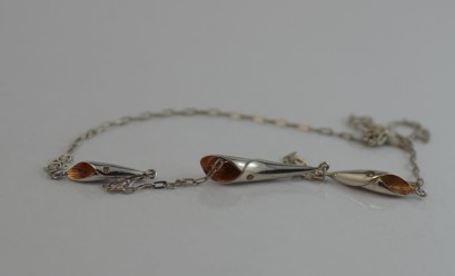 small diamonds set in SS lily on small links of sterling silver -