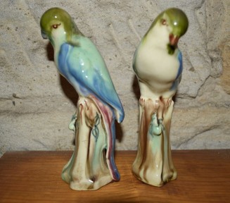 Lot Description:A pair of glazed ceramic budgerigars