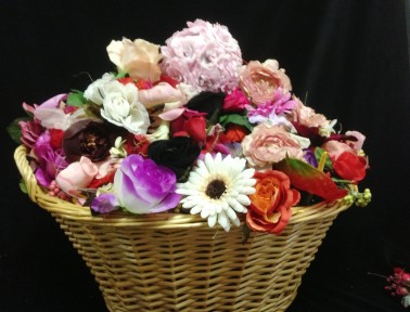 Lot Description:A Large and Overflowing Basket of Millinery Flowers petals and Other Treasures