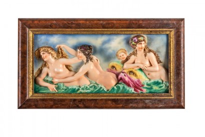 Lot Description:An unusual Royal Worcester porcelain plaque relief decorated with sea sirens, English, 19th century