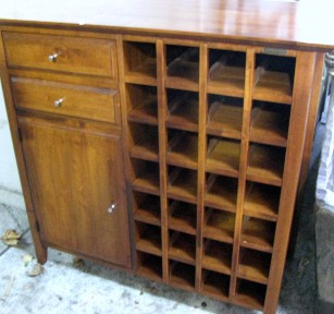 Lot #894 - A timber wine cabinet with two door and a drawer