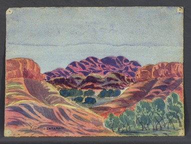 Stamps verso for Hermansburg; & District Superintendent, Native Affairs Branch, Allice Springs 17 Feb 1953 (& signed within stamp). -