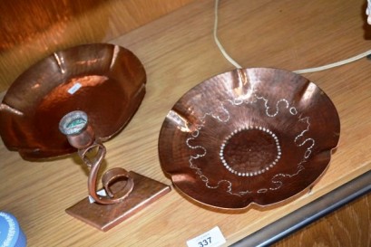 Lot #337 - 3 pieces of hand made copper ware by Weeda