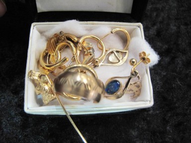 Lot Description:9ct gold scrap 2.05grams with pair silver opal earrings various gold plated earrings