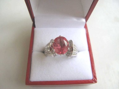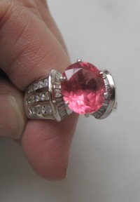 Lot Description:14ct white gold diamond natural pink spinel ring