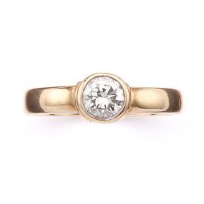 Set with a modern brilliant cut diamond in a rub over mount. Estimated TDW 0.40ct. -