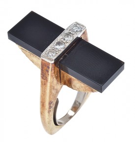 Lot Description:An Onyx And Diamond Cocktail Ring
