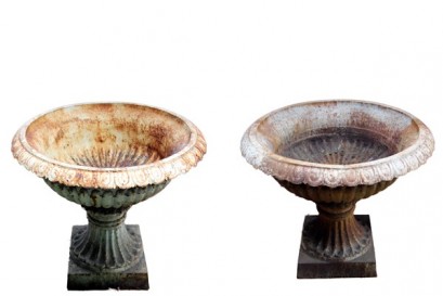 Lot Description:A pair of George III style campagna shaped cast iron urns