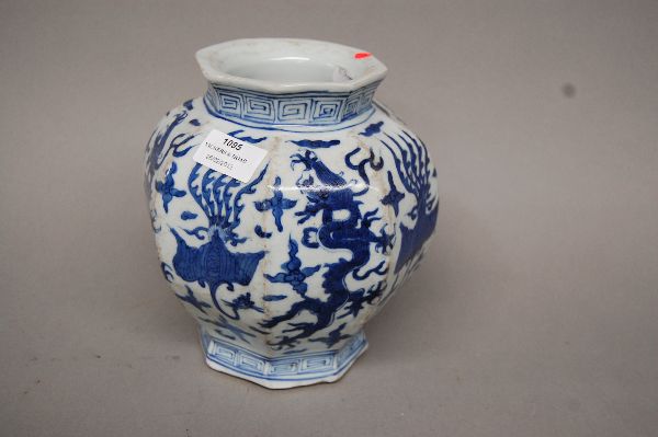 Lot #1095 - Chinese blue and white hexagon shaped vase with dragon design