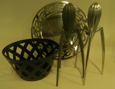 Lot Description:Two Alessi 'Salif' juicers by Phillipe Stark and an Alessi bowl and tray
