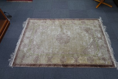 Lot Description:Chinese sculptured wool green and tan coloured rug