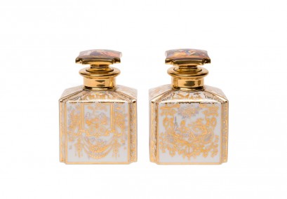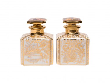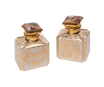 Lot Description:A fine pair of Paris porcelain gilt and painted cologne bottles and stoppers, French, mid 19th Century
