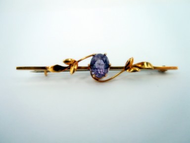 Lot Description:A 9ct Yellow Gold And Amethyst Bar Brooch