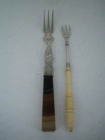 one Dutch silver with banded agate handle; the other with ivory handle probably silver-plate. (2) -