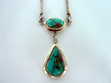 Lot Description:A Turquoise Matrix And Silver Pendant Necklace