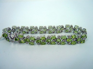 Lot Description:A Silver Bracelet Set With Peridots Closing To A Double Safety Clasp
