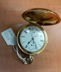 Lot Description:Stewart Dawson & Co. 18ct gold keyless lever hunter case chronograph pocket watch