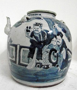 Lot #811 - Blue and white Oriental pot with figure decorations