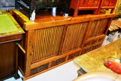 with 2 pairs of sliding doors & an arrangement of 8 various drawers, 200 cm long -