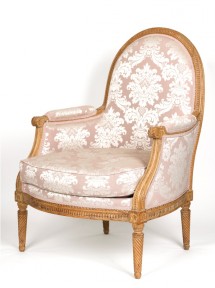 with pink brocade upholstery