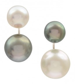 Comprising a Tahitian pearl measuring 13.5mm and another of 10.4mm, the other set with a white pearl measuring 14.3mm and another of 10.9mm, mounted in 18ct white gold. -