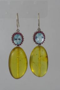 Lot Description:9ct gold, Baltic amber, ruby and topaz earrings
