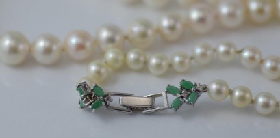 Lot #156 - Akoya pearl necklace with emerald clasp