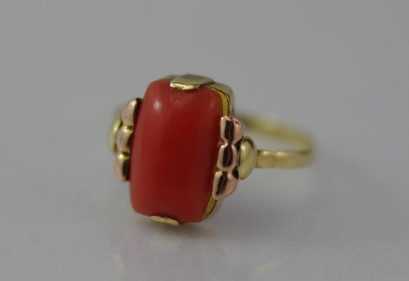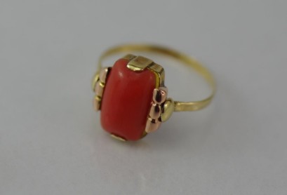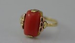 Lot Description:9ct yellow gold coral ring