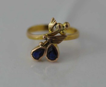 Lot Description:9ct gold and 2 blue sapphires dress ring
