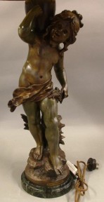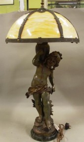 Lot Description:French Art Nouveau figural spelter lamp