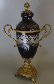 Lot Description:Antique Ruby glass and ormolu lidded urn