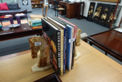Lot Description:Pair of green/brown alabaster horse head book ends