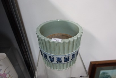 Lot Description:Probably antique Chinese celadon glazed brush pot