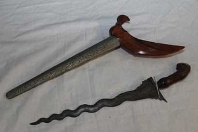 Lot #144 - A Balinese Damascus Steel Curved Dagger