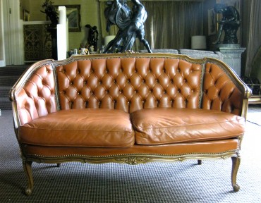 buttoned and covered in leatherette.
